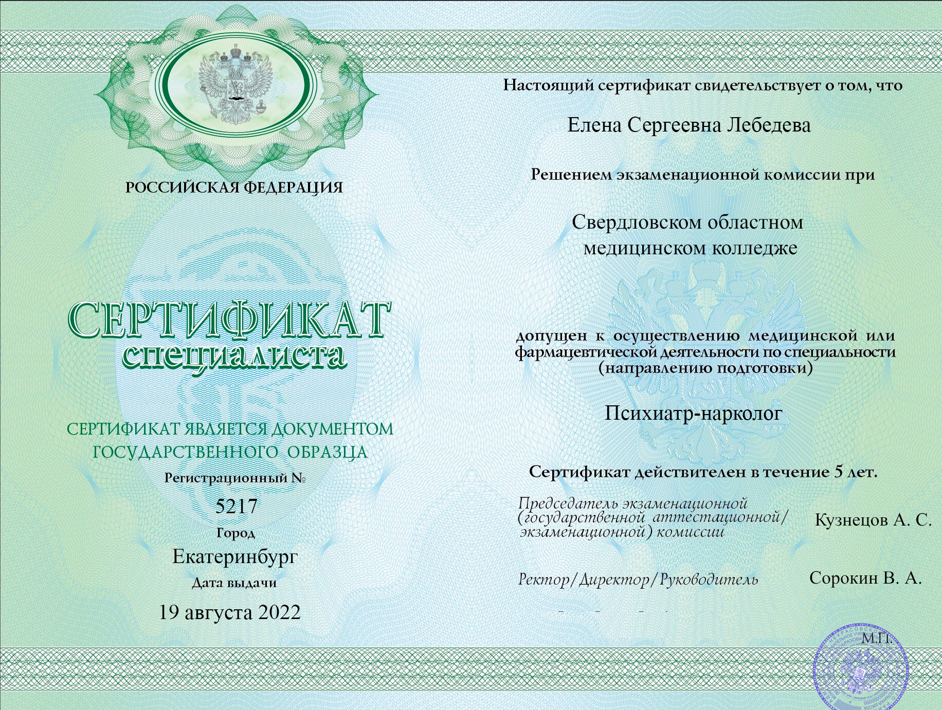 Елена Сергеевна Лебедева врач нарколог клиники доктора Стукаловой в Первомайске